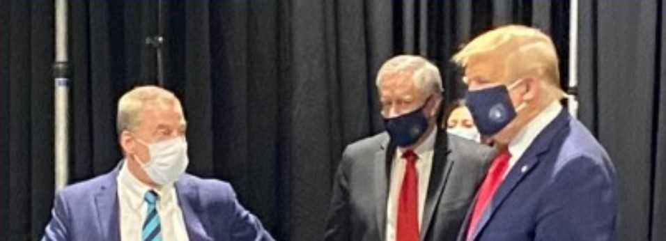 photo: Trump in Michigan yesterday. He did not want to be photographed wearing a mask, but a state legislator sneaked this pic. https://twitter.com/repspeier/status/1263605710748778496?s=21