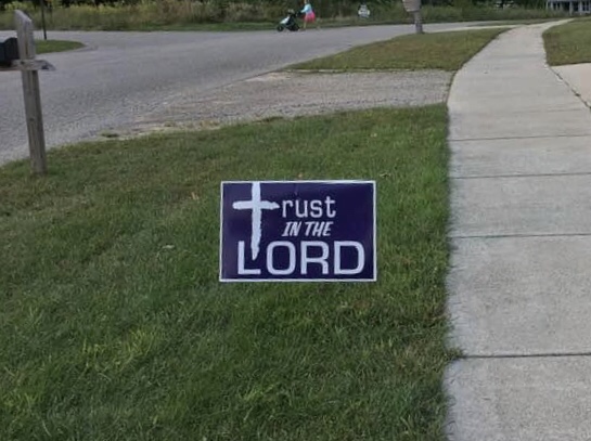 While out bicycling this afternoon I saw a yard sign—the same size and format as a campaign sign for a political candidate—that said “Trust in the Lord.” So . . . was it a political sign or a religious sign? Clearly it’s a political sign, or a counter to political signs. Signs of this size,Continue reading ““Trust in the Lord” as a political slogan”