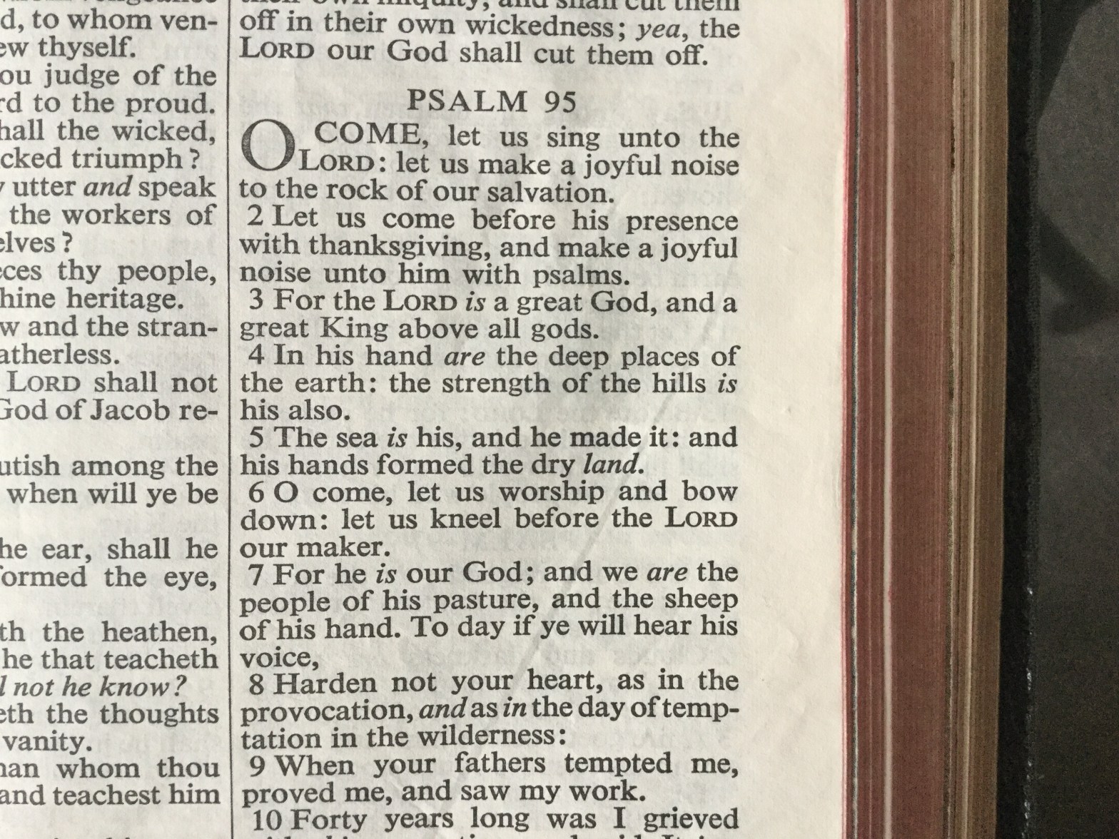 O come, let us sing unto the LORD:let us make a joyful noise to the rock of our salvation.Let us come before his presence with thanksgiving,and make a joyful noise unto him with psalms.For the LORD is a great God,and a great King above all gods.In his hand are the deep places of the earth:theContinue reading “Psalm 95 and discipleship failure: An invitation and a warning”