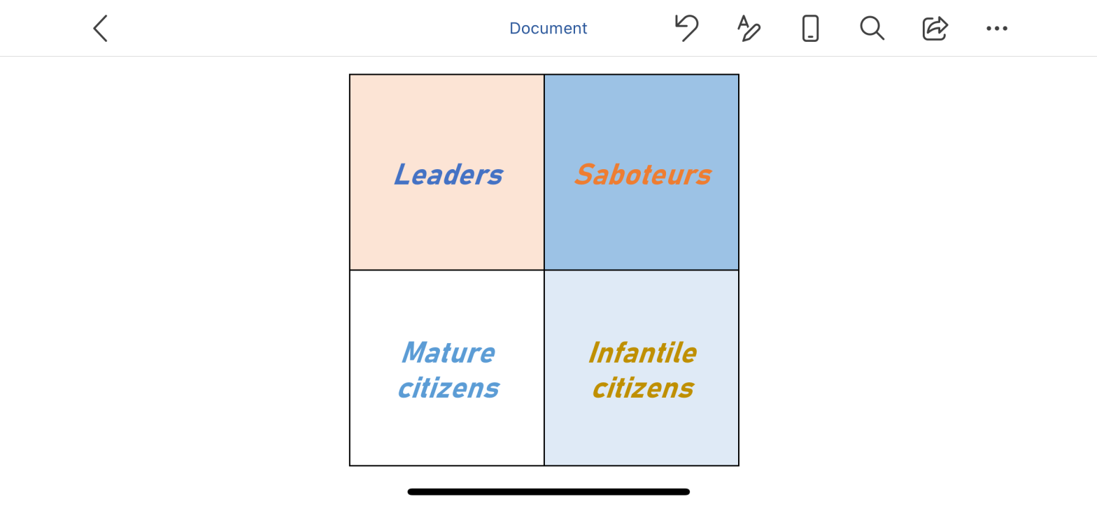 The shadow counterpart of the leader is the saboteur. If the leader is a unifier and coordinator, the saboteur is a disrupter, a scatterer, a sower of discord. The leader has the common good in view, but each saboteur has their own good in view. They see the crisis as an opportunity to expand their own power, or their own wealth, at the expense of others.