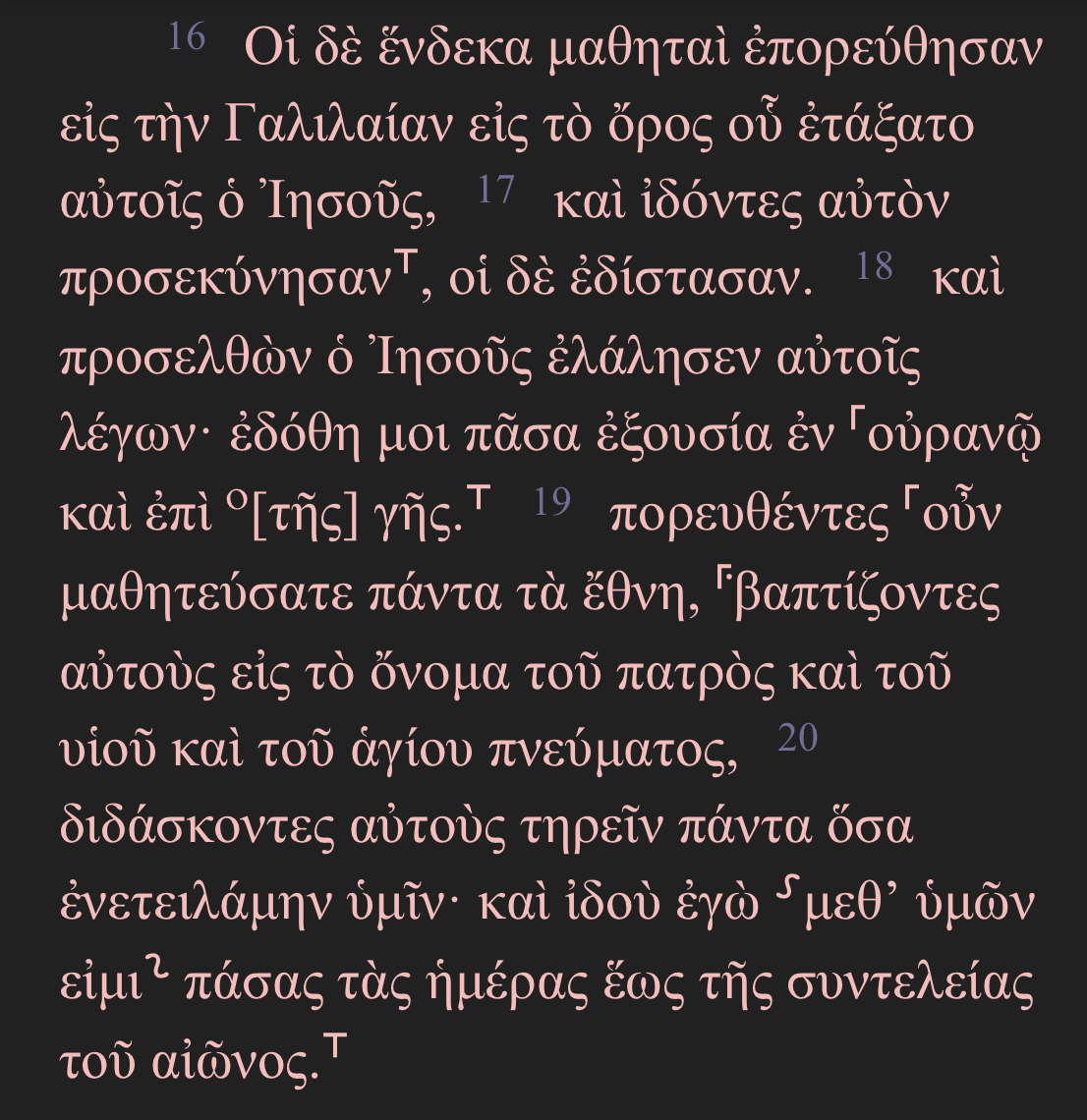 So let’s look at what this Matthean ending leaves us with. I’ll take the elements in reverse order, working from the end back to the beginning of the passage.