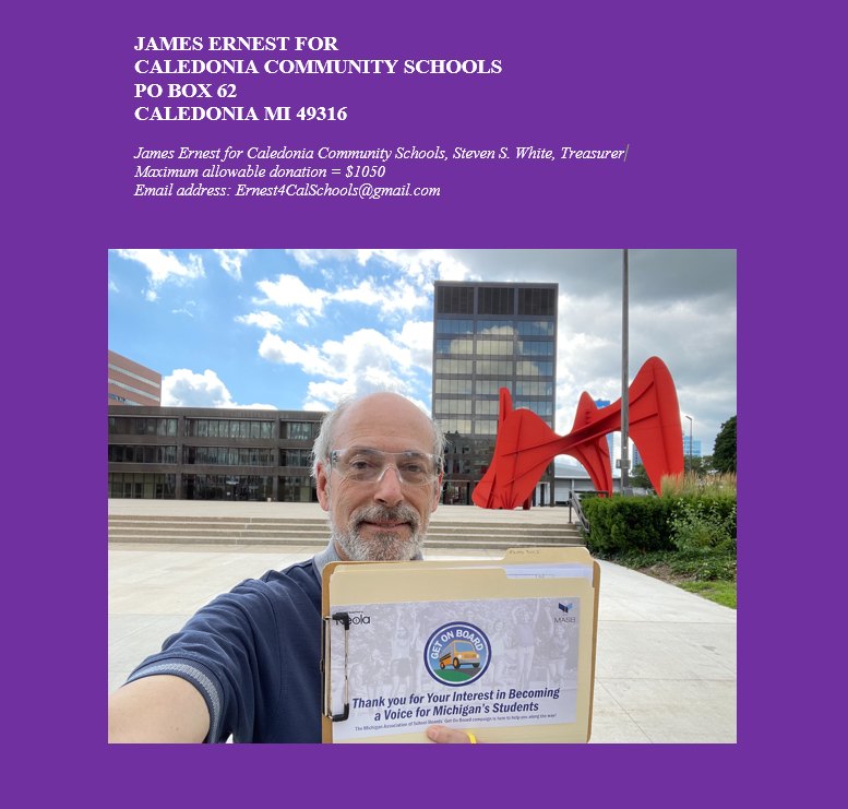 James Ernest for Caledonia Community Schools: A Platform. I am a candidate for school board trustee. Vote for me in November.