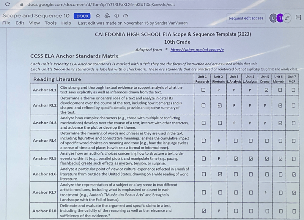 - A decision was made to step back and take a deep dive into the ELA Standards, build out scope and sequence documents as well as curriculum maps, to establish a solid foundation for students’ needs.