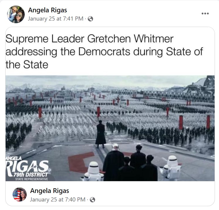 So Angela Rigas, Michigan state representative for the district in which I live, considers red-flag laws (extreme-risk protection orders), universal background checks, and requirements for safe storage of guns to be violations of the Second Amendment. Most Americans do not. Americans (and Michiganians) have differing opinions on all sorts of things. On some questions relatingContinue reading “Angela Rigas and the “God-given right” to possess and use guns with no restrictions whatsoever”