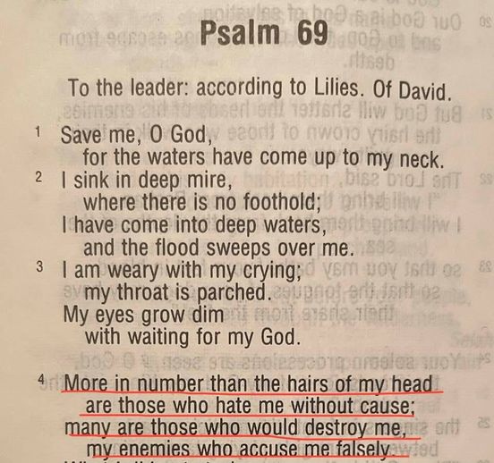 Really, Psalmist? Again? More tears, more moaning, more self-pity? More in number than the hairs of your head? So you have counted them? Either the hairs or the enemies? Good lord, if you had a violin in addition to that harp somebody in your own house would have to shoot you. Are you sure aboutContinue reading “Claiming innocence (Psalm 69)”