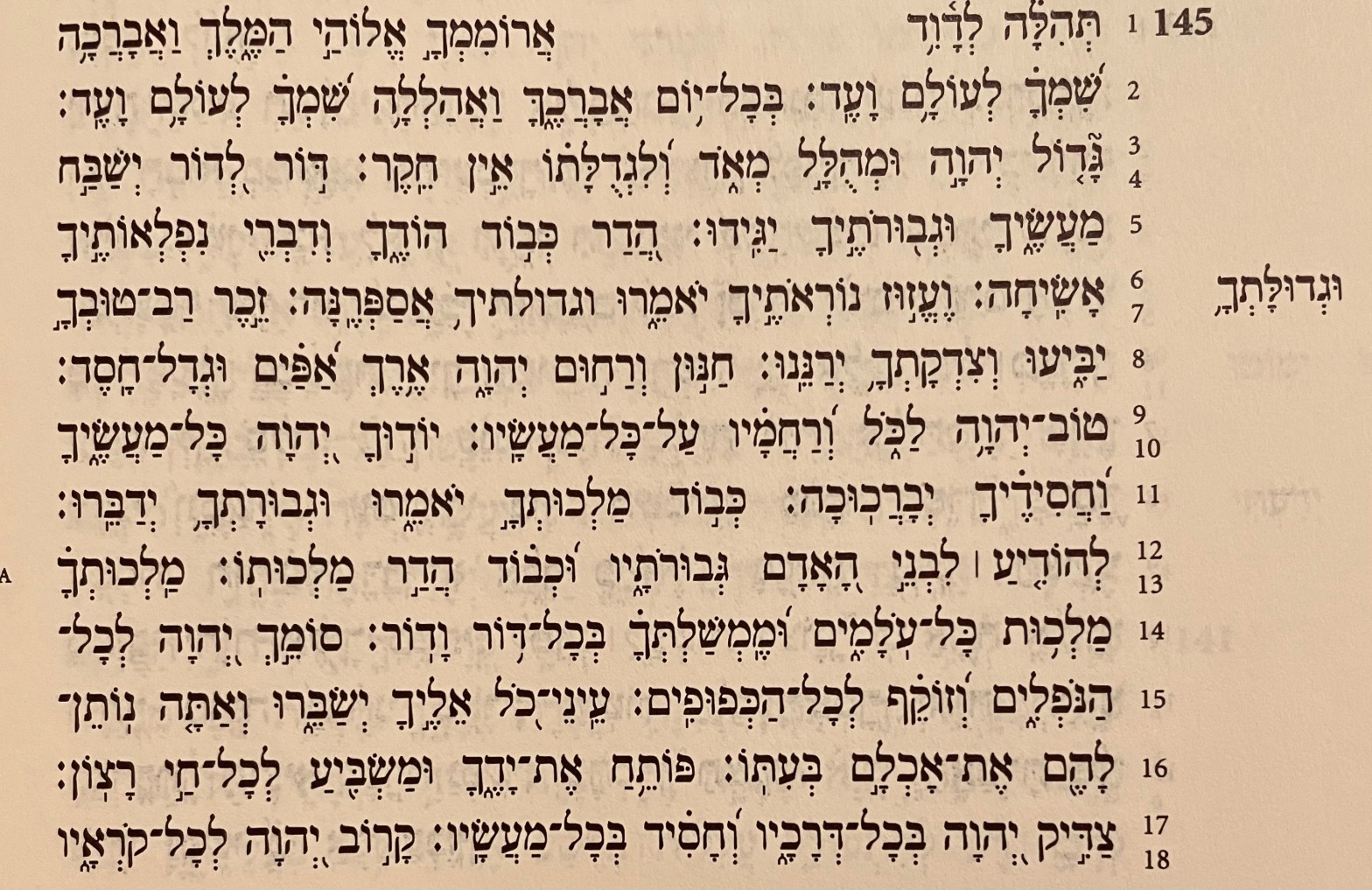Have you ever noticed how many times Psalm 145 uses the words ALL and EVERY? (They translate the same Hebrew word, KOL.) I am lowercasing LORD below to let all the KOLs stand out. We could also note three occurrences of L’OLAM VA-ED, FOR EVER AND EVER; these I have italicized. I will extol thee,Continue reading “All and every, for ever and ever (Psalm 145)”